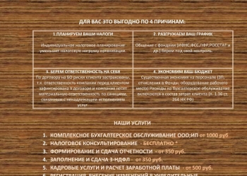 Оказываем услуги по бухгалтерскому обслуживанию для ИП и ООО всех систем налогообложения (ОСНО, УСН, ЕНВД) Такие как...
